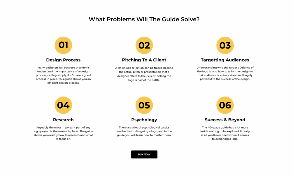 Not only that, but included is a PDF questionnaire document that you can send to every new client that you clinch. The questionnaire proves to be highly useful in gaining insight into your client, their brand, and the target audience of the logo. Why that is important and a whole lot more is explained within the eGuide itself.